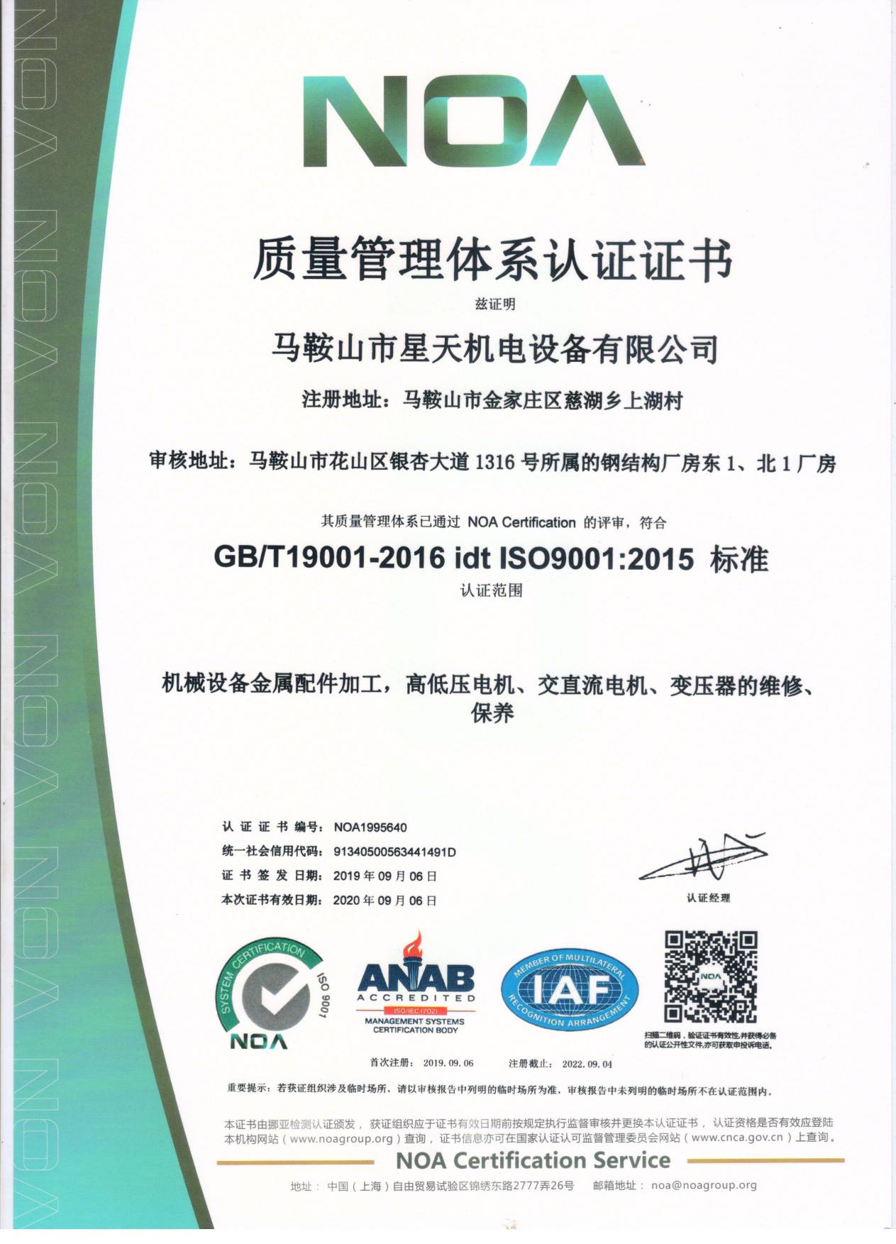 質量管理體系證書